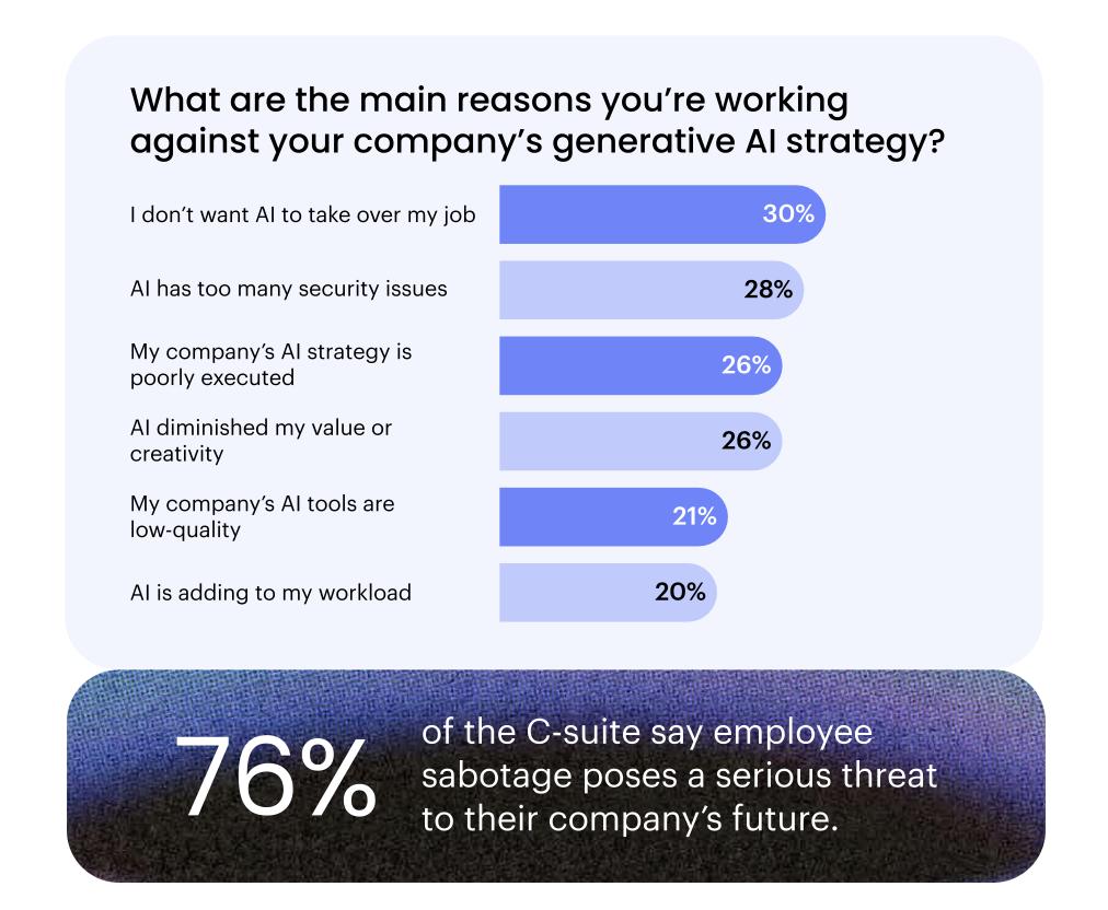 员工对抗 AI 最重要的原因是:不想让 AI 替代自己的工作|图源:WRITER