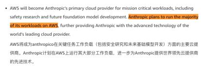 换句话说,Anthropic 当前最主要、最深度绑定的基础设施承接方是 AWS。 Amazon 官方甚至直接写到,Anthropic 计划把大部分工作负载都放在 AWS 上。