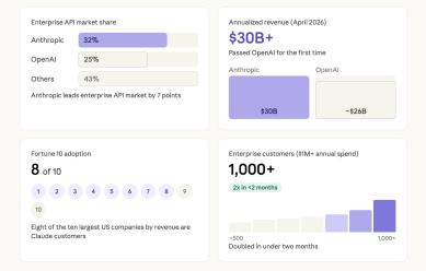 更关键的是,每年在Claude上花费超100万美元的企业客户,两个月内从500家翻倍至1000家。这说明企业级AI已经跨过了“试一试”的阶段,进入了真正的大规模采购期。