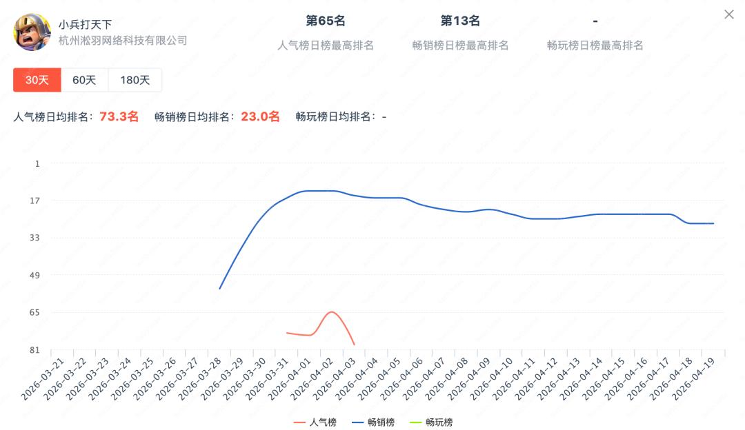 3月28日,恺英网络旗下小游戏新品《小兵打天下》首次进入微信小游戏畅销榜,后续榜单排名持续稳步上涨,截至4月19日,已稳居微信小游戏畅销榜TOP30。