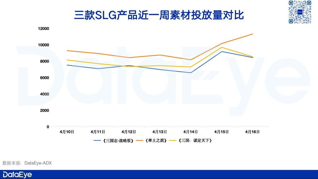 但从其他SLG品类的动作来看,《三国:天下归心》的上线,确实让同赛道产品产生了一定的压力,如DataEye研究院观察到,在产品上线当天,包括《率土之滨》、《三战》、《三谋》等产品不约而同的都在15日、16日两天增加素材投放量。
