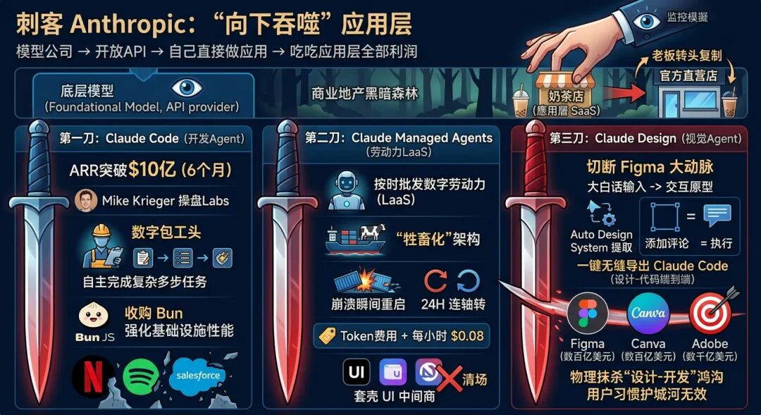Anthropic正在扮演这个冷血的收割者。它彻底撕破了"只做底层"的温情面纱,向全行业展示了一条极其残暴的垂直扩张路径:
