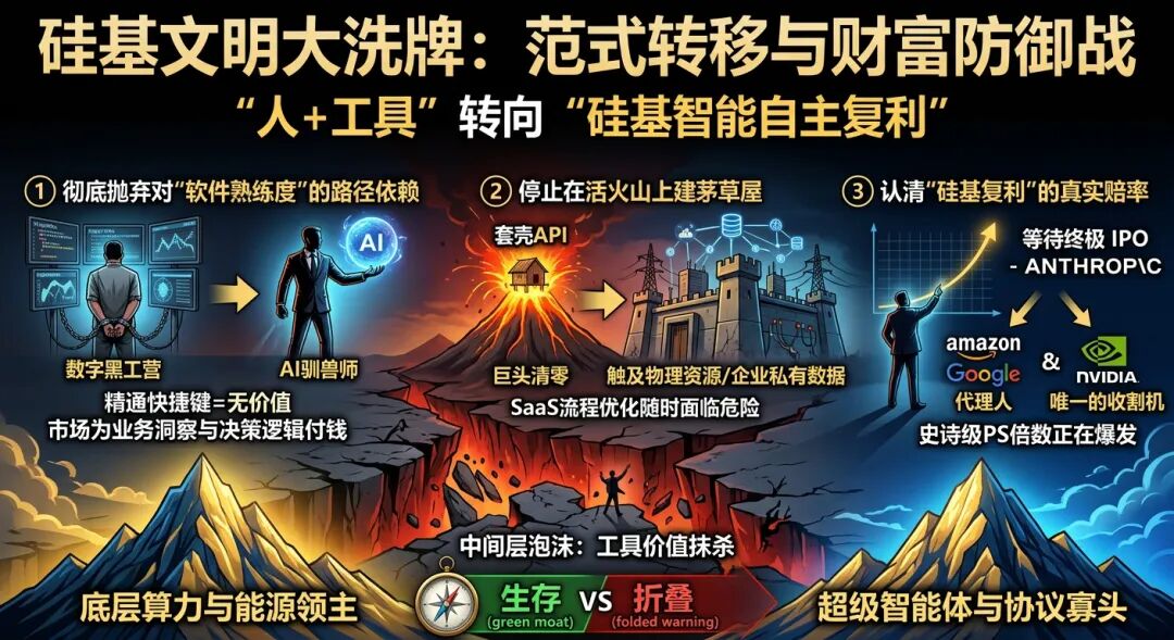 著名投资人李录曾将当前定义为"3.0科技文明",其核心是复利来自"优秀企业+市场化配置"。但在2026年的今天,我们正在无情地向"4.0硅基文明"跃迁。