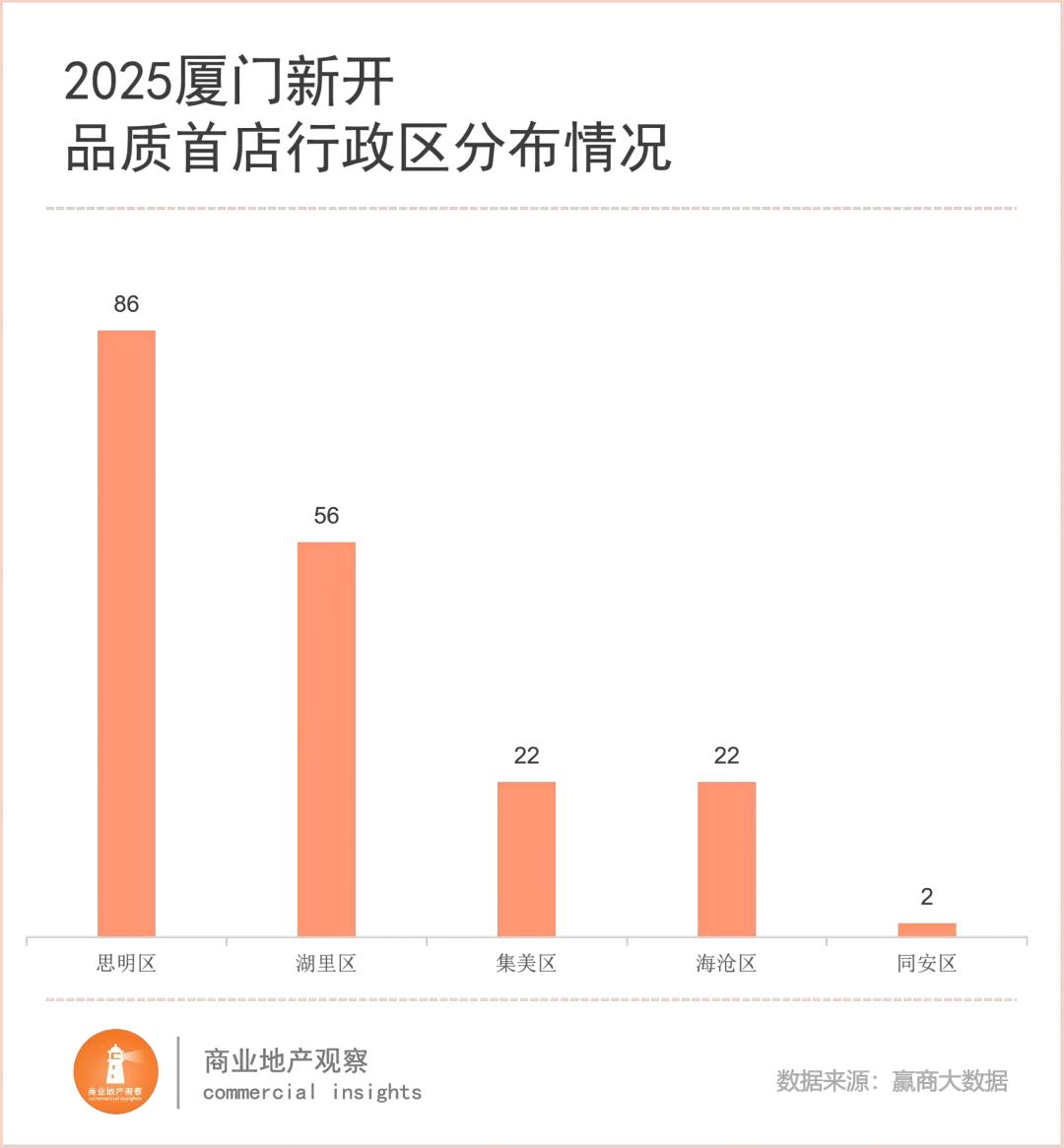 2025年厦门品质首店布局延续“岛内提质、岛外扩容”的发展态势,商业空间结构进一步优化。