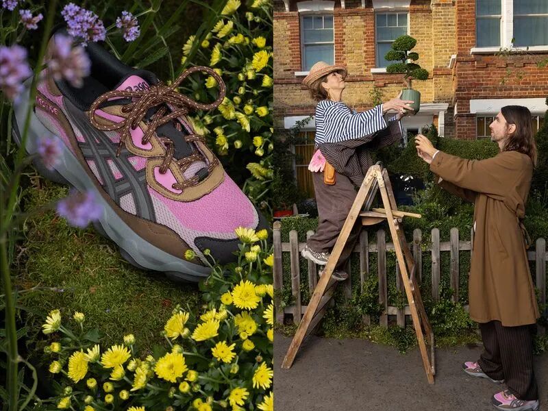 与此同时,ASICS SportStyle今年推出的NEOTIDE则是另一种「打法」。品牌没有让植物停留在鞋面图案或季节配色上,而是直接把园艺与自然写进了产品故事里。