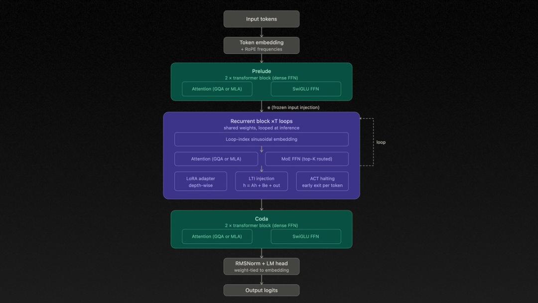 循环块内部用了混合专家层,MoE路由器在每次循环中激活不同的专家子集。