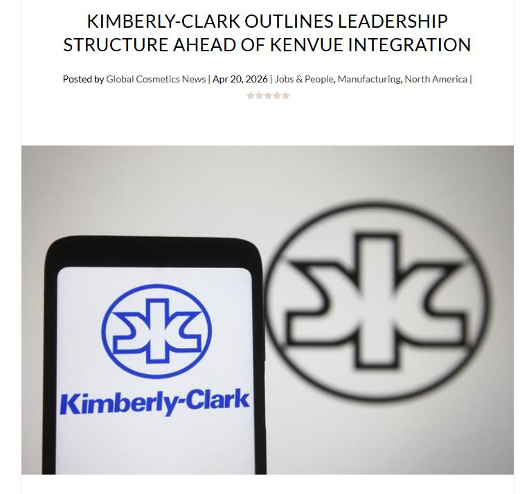 日前,全球个人护理巨头金佰利公司(Kimberly-Clark,下文统称:金佰利)正式对外公布了其与消费者健康巨头科赴(Kenvue)合并后的全新组织架构与核心领导团队。这是继此前聚美丽报道双方股东投票通过收购案后,整合进程中的又一关键节点。(详见)