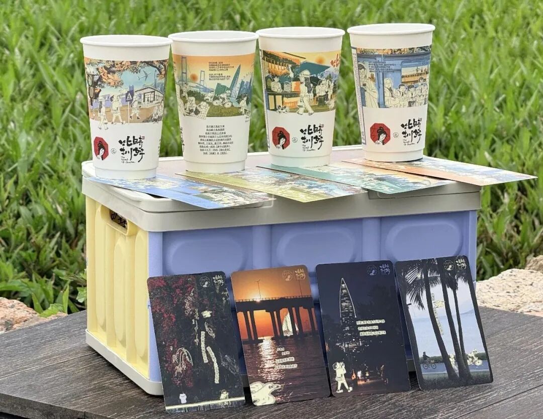 此外,门店还推出了深圳主题系列纸杯、明信片、城市限定礼盒等,在设计上融入了深圳本地特色。