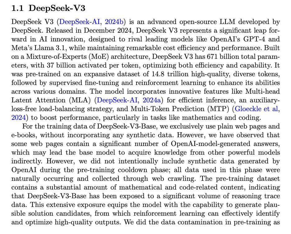 但这事儿, DeepSeek 后面专门在论文的补充材料里作了解释,说是 DeepSeek-V3-Base 的预训练数据完全来自互联网,没有刻意使用合成数据。