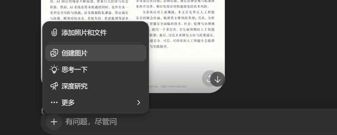 用户可以打开ChatGPT对话,点击输入框左侧的加号选择创建图片,会默认使用ChatGPT Images 2.0,接着可以点加号添加照片和文件,然后发送提示词即可。