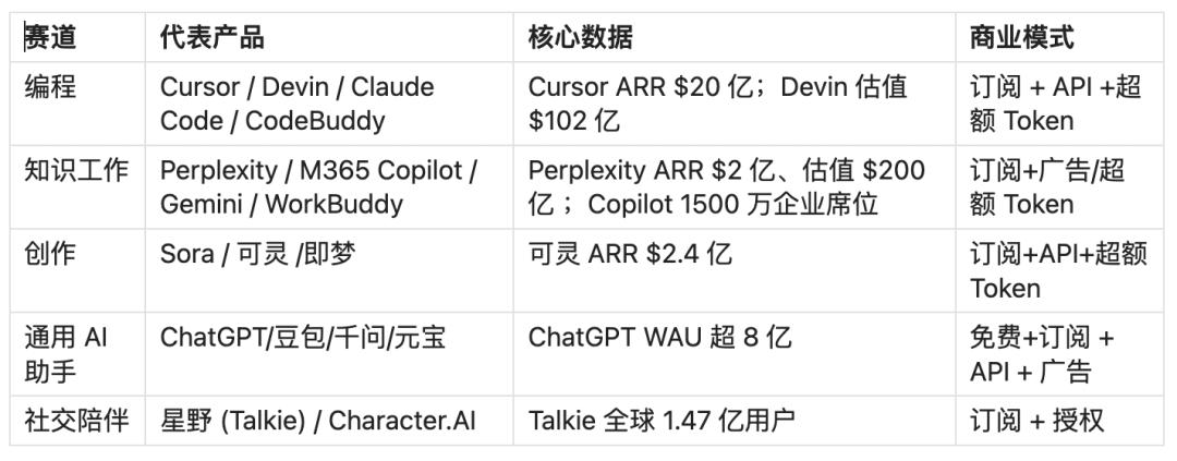 社交——关系链是最难突破的壁垒。微信元宝、Meta AI 功能有限,AI 原生社交产品用户留存难。核心是信任问题:用户不太会让 AI 代替自己社交。转机更可能来自非社交领域。