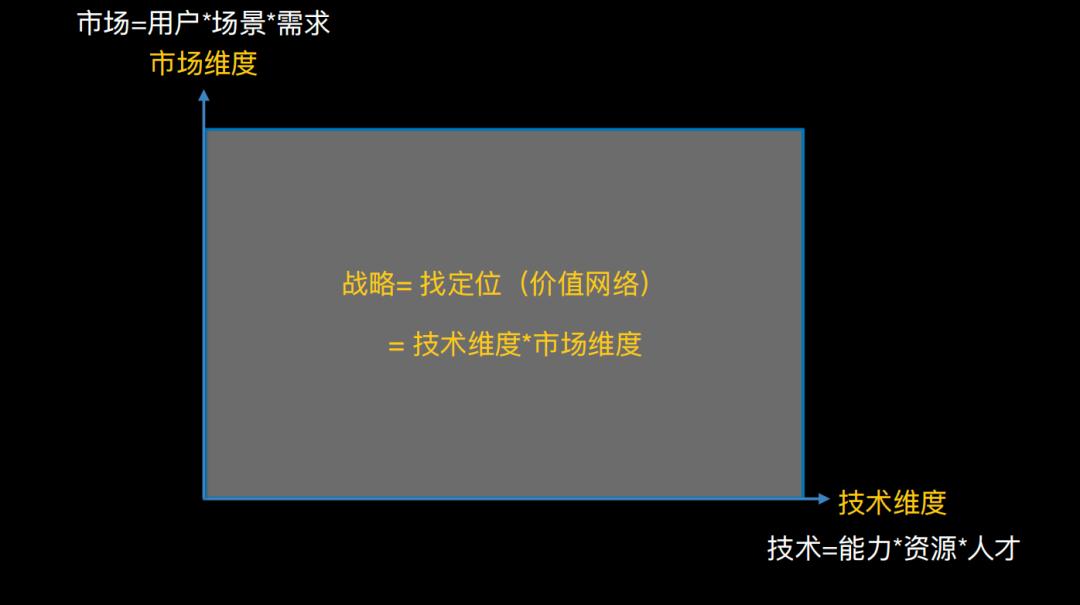战略最简洁的定义:技术维度×市场维度,并由此黏合出一个独特的价值网络,这块“地盘”本身,就叫战略。