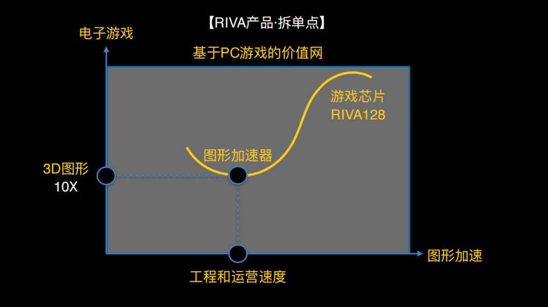 一旦这三个关键词被提炼出来,整个结构就真正立住了。英伟达开始一步一步向右上角迁移。最初服务的是PC,后来逐渐进入工作站;最初服务的是电子游戏,后来也进入了电影工业。原本处于右上角的硅图公司(SGI),最终被英伟达颠覆了。