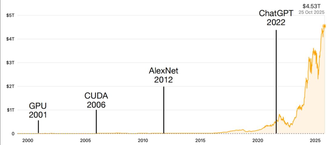2025年10月29日,英伟达市值冲破5万亿美元,创下商业史上的震撼纪录。