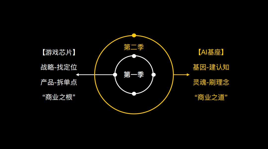 也正因此,我提出了“第一季”和“第二季”的概念。第一季,是英伟达在商业世界中通过竞争完成崛起的阶段,关键词是战略和产品。我把它称为商业之根,也就是商业背后的第一性原理。