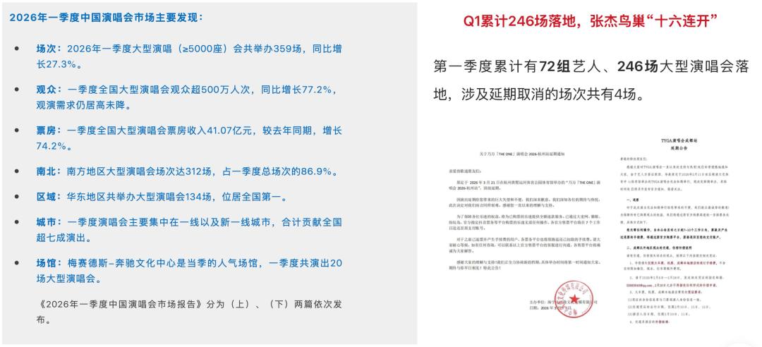 如果说话题破圈只是今春演唱会火爆的侧面,那么最近几家数据平台的一季度报告,则强势证明了Q1演唱会的全面暴走:
