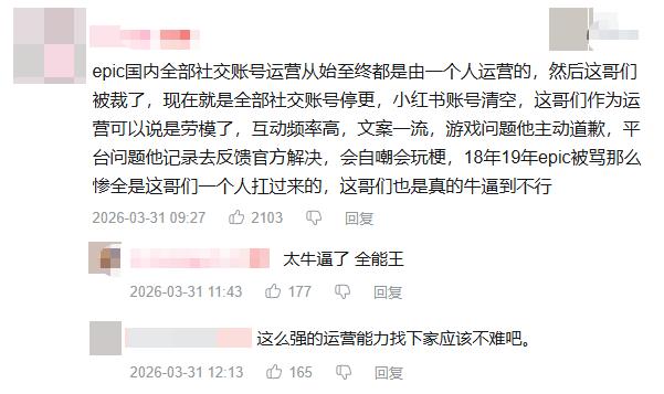 值得关注的是,此次裁员也波及了国内的相关岗位。其中备受关注的是Epic国区运营人员的离职。该运营自2019年起负责Epic在国内的社区沟通,彼时Epic因平台策略等问题口碑一度低迷,正是凭借其接地气的沟通风格与积极回应,才逐渐扭转了国内玩家的看法。也正因如此,他的离开让不少玩家感到遗憾与不舍。