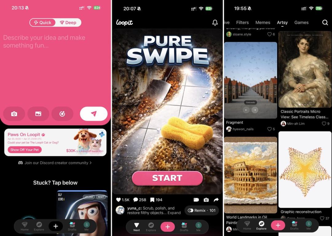 其旗下产品Loopit,好比“可以玩的抖音”,是一个面向C端的AI互动内容平台,覆盖可交互内容的创作、分发和消费。