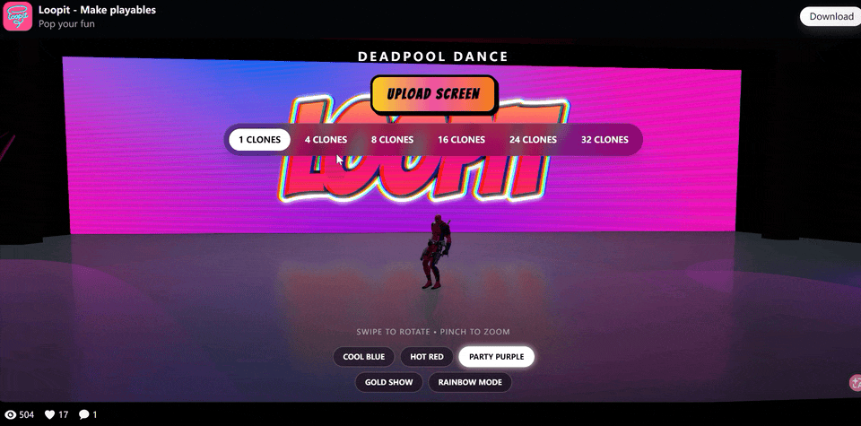 围绕增强“体验”,近期Loopit拓展了“联机内容”的创作,支持多人互动内容的生成和发布。