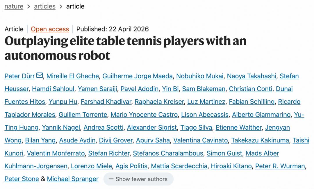“这项突破的意义远超乒乓球这项运动。”Sony AI 首席科学家 Peter Stone 表示。