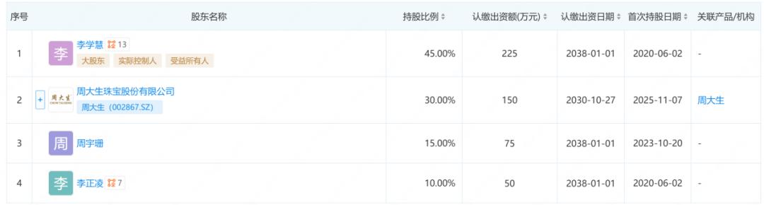 2025年11月,黄金珠宝上市公司周大生(002867.SZ)新增对物喜堂的投资,持股比例为30%。