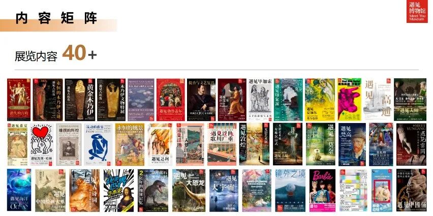 不过,目前中创文旅将重心从文创周边转向了展览演艺,包括遇见敦煌光影艺术展、文艺复兴三杰、毕加索、古埃及文物等主题展览,表示旗下遇见博物馆品牌在北京、上海等地设有7座场馆,举办了超过120场自营与授权展览,接待观众超过400万。