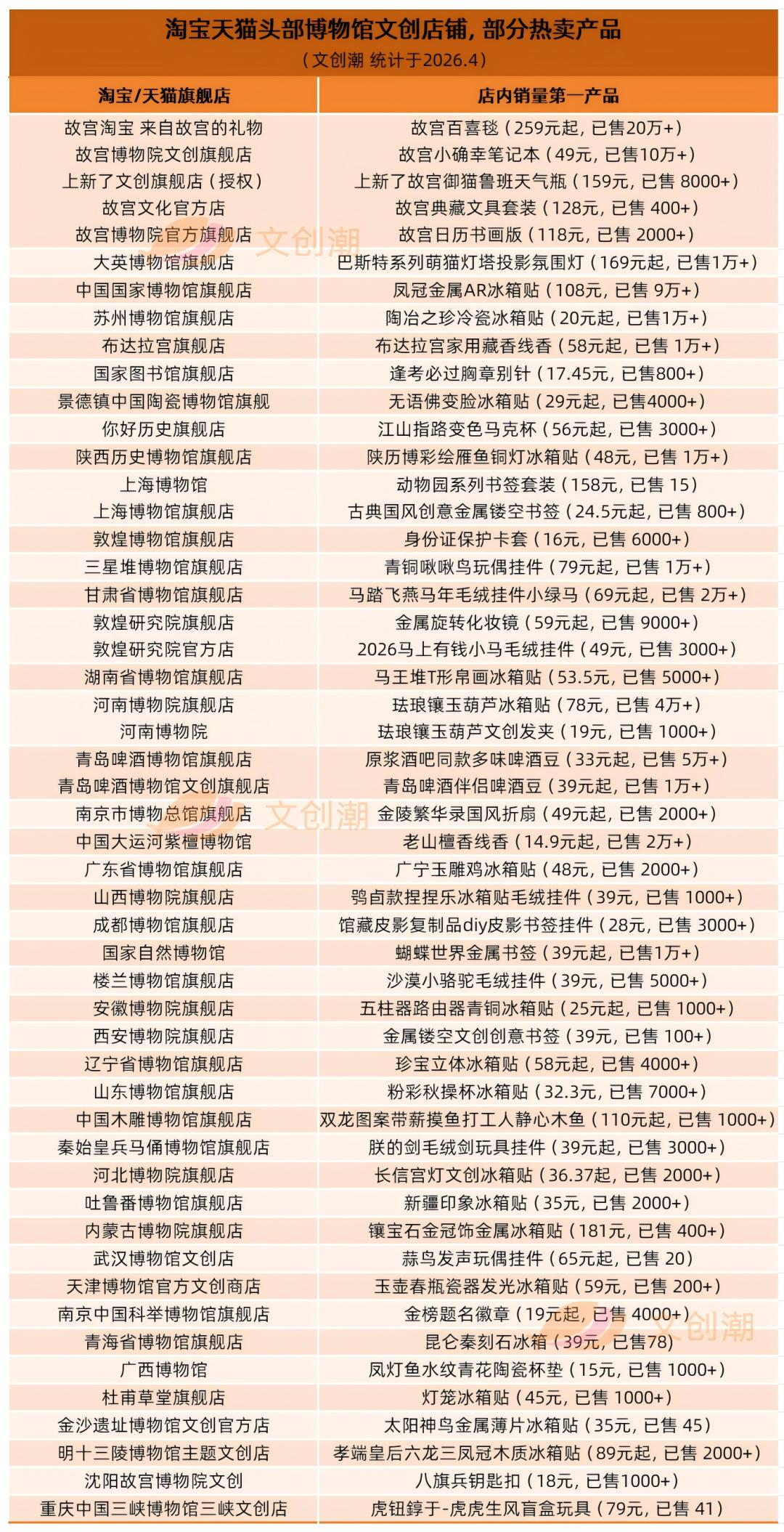 故宫、国博、敦煌、三星堆……成百上千的博物馆做起文创周边,仅电商店铺就吸引大量粉丝,更有周大生、创源股份、果麦文化等上市公司投资布局。
