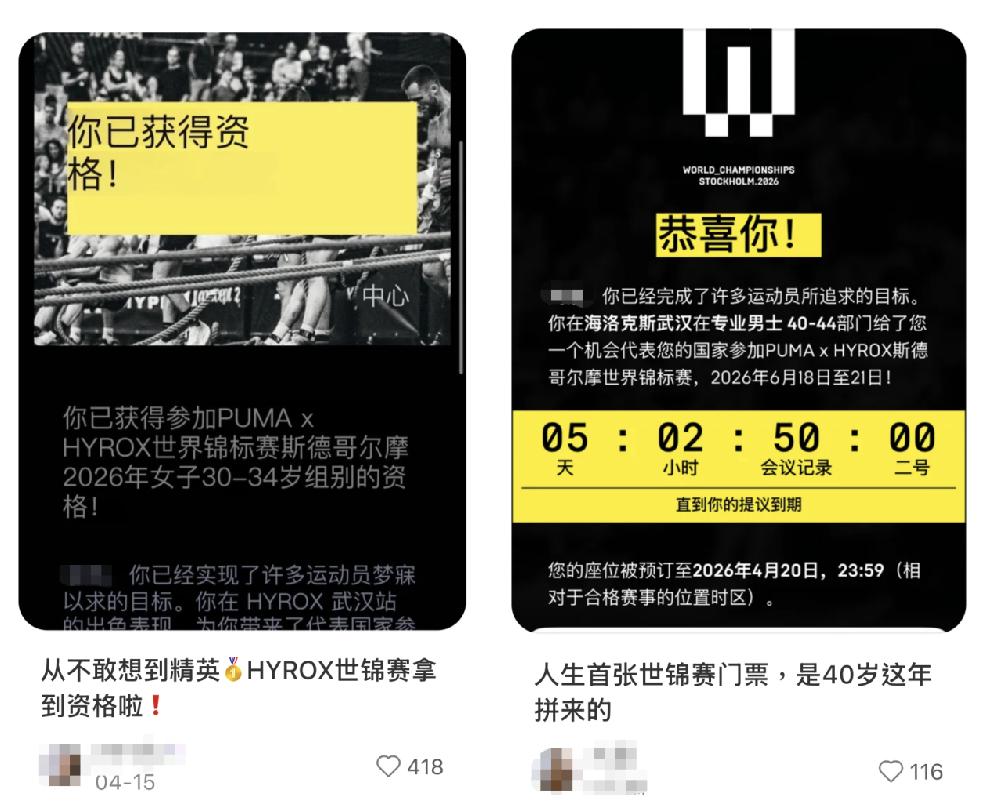 另一方面,赛事本身也在加速「造星」。过去一周内,多位中国精英选手陆续收到了2026年HYROX斯德哥尔摩世锦赛的参赛邀请,本土选手开始在全球体系中获得可见度。而这场即将在六月开战的赛事,正是HYROX26/27新赛季的启动之时。