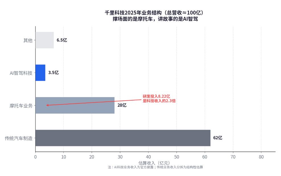 财务现实同样残酷:2025年科技业务收入3.5亿,研发投入8.22亿,每赚一块钱倒贴两块多;整体归母净利润约8400万,靠的是传统汽车和摩托车制造业务在撑场面。梅赛德斯-奔驰2025年9月以约13.39亿元受让3%股份,这个背书解决了国际化的想象空间,但解决不了科技业务的商业闭环还没跑通的现实。