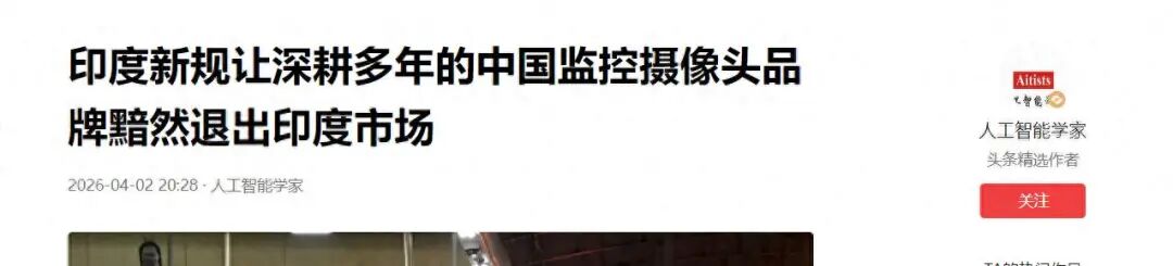 如果说前段时间,印度电子信息技术部推出的闭路电视摄像机认证新规,把海康威视、大华等一批在印度耕耘多年的摄像头品牌挡在门外,黯然退出印度市场,这是印度对中资泼出的第一盆冷水。