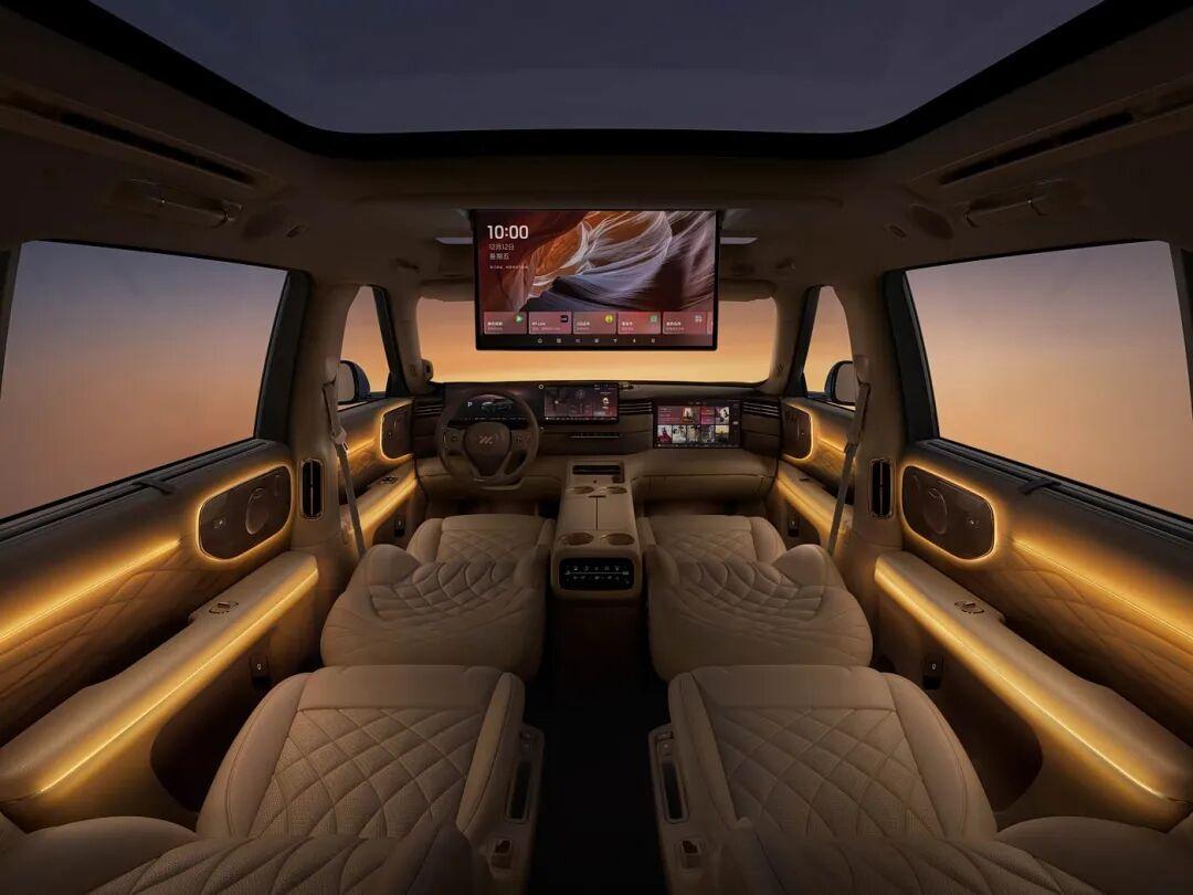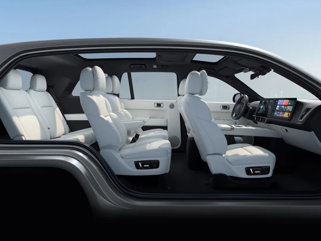 但新能源SUV不一样,由于电机电控的集成度高,占用的空间极小,新能源SUV可以大幅减少机舱空间,缩短前悬和后悬,把轴距拉到极致,随随便便做出劳斯莱斯级的乘员舱长度,而且电池是平铺在底盘上,前后动力也解耦,无需布置传动轴,使得地板非常平整,没有鼓包没有阶梯,布置座位更方便。这实际上淡化了MPV和SUV之间的界限,在新能源语境下,两者的内部空间其实非常接近。
