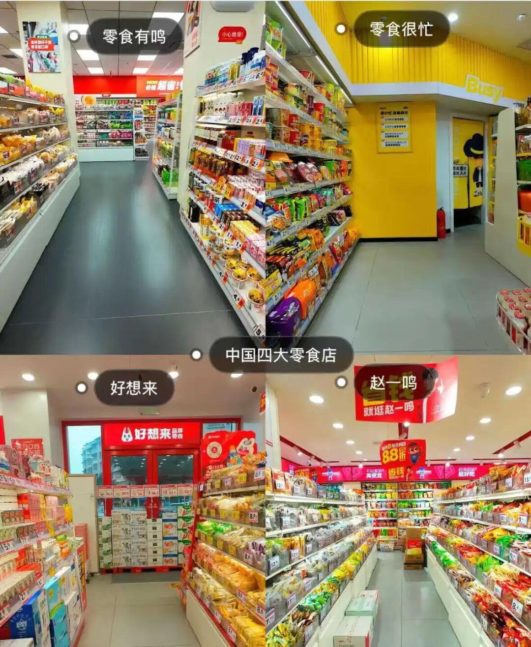 店是越开越多,越开越密,家楼下就能瞅着一家。赵一鸣、零食有鸣、零食很忙、零食优选......
