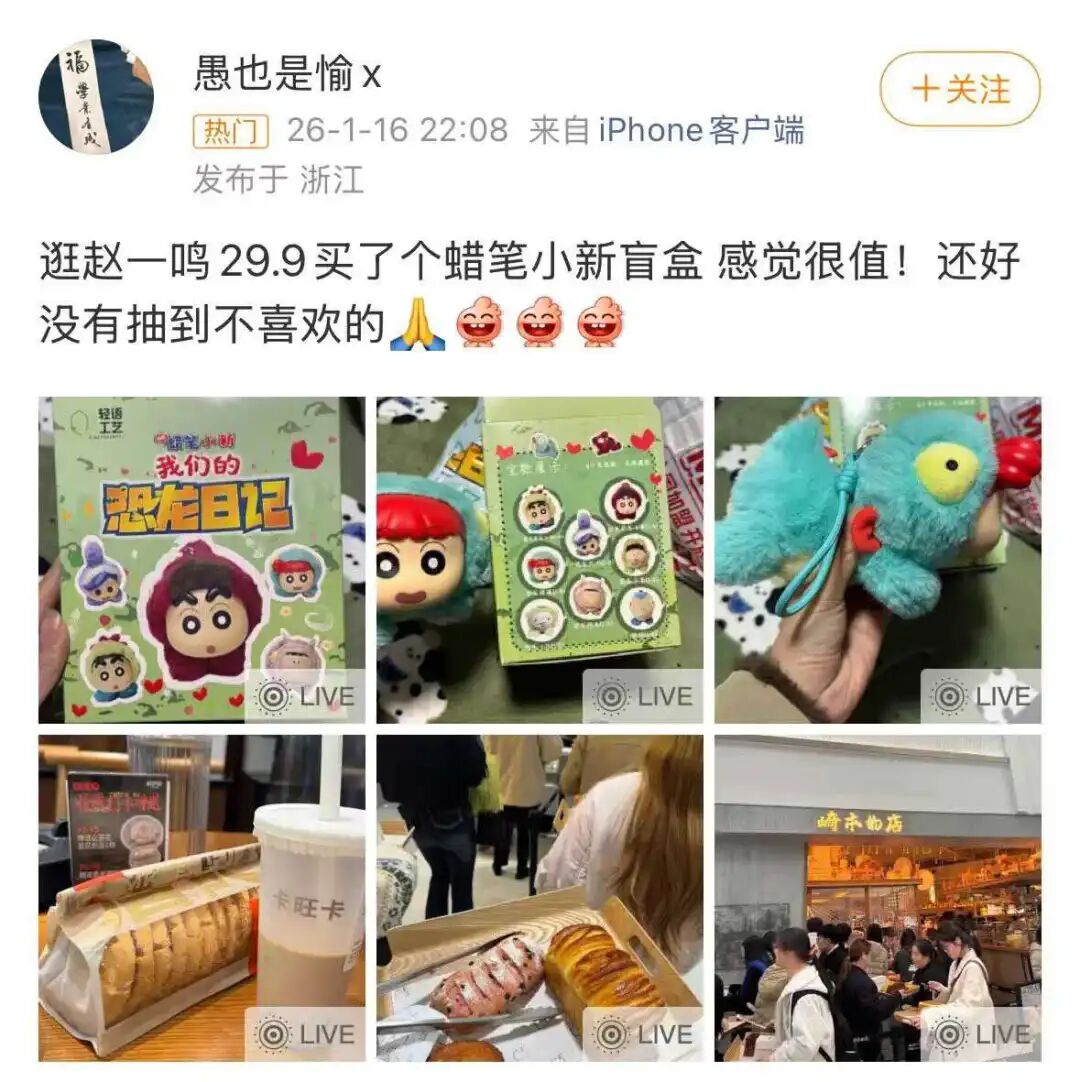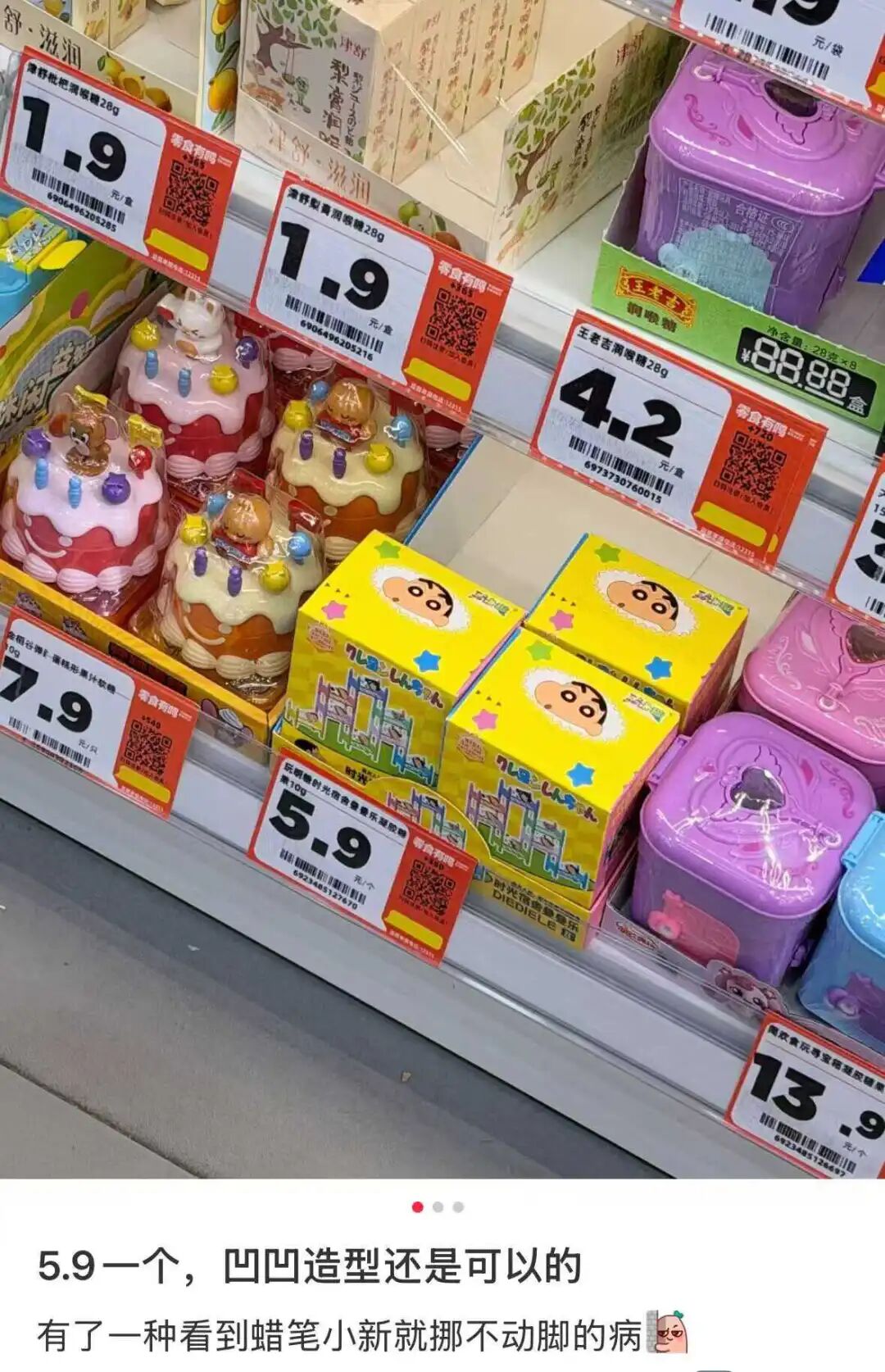 有网友本来只是想去买包辣条,结果看到六块不到的蜡笔小新盲盒——