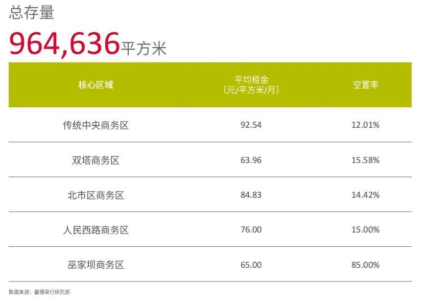 从空置率最高的区域来看,早在2023年巫家坝商务区就以85%排名第一。