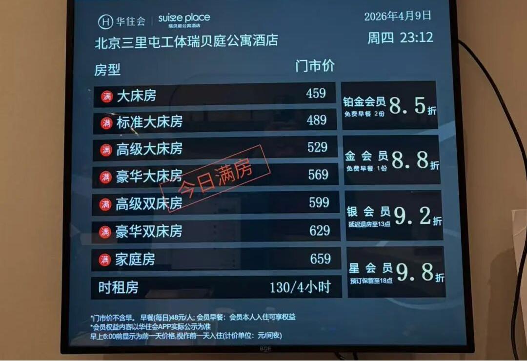 楼上的福朋喜来登负责承接高端短途商旅与会议需求,楼下的瑞贝庭则面向需要长达数月稳定居所的政企中长住客群。