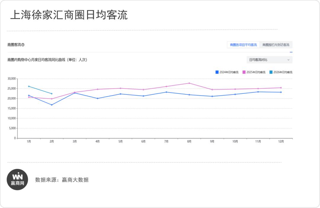 根据赢商网发布的《中国商圈商业力TOP100指数榜单》,徐家汇商圈在2025年位列全国第27位,稳居上海西南片区能级最高的商业中心地位。客流数据显示,商圈2025年全年日均客流量超24000人次。