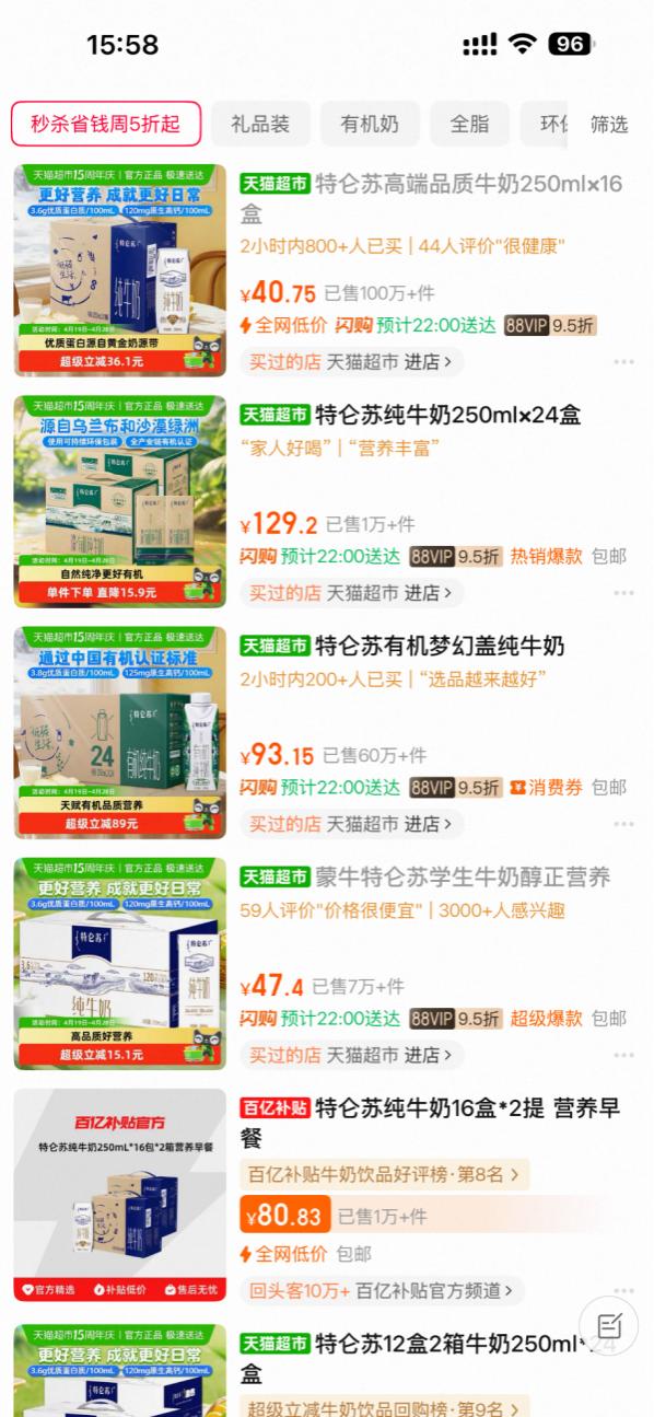 但如果我说,一箱250mlX16盒的特仑苏牛奶,在某猫超市也才40元呢?