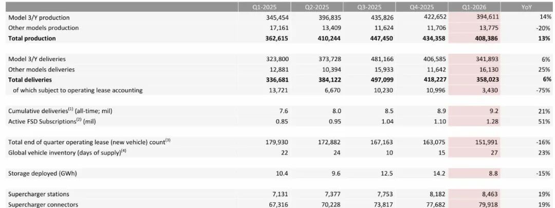 第一季度,特斯拉在全球范围内交付了358023辆汽车,同比增长6%,低于华尔街预期的37万辆,但考虑到去年同期因Model Y生产线升级而损失了数周产能时间,这份成绩单依然值得审慎解读。
