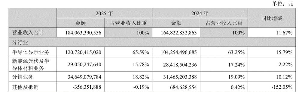 半导体材料业务是TCL中环财报为数不多的亮点,该业务2025年实现营业收入57.07亿元,同比增长21.75%,占总营收比例为19.64%;毛利率达18.94%,同比提升5.70个百分点。