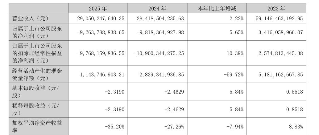 TCL中环2025年营收同比微增2.22%,增速大幅放缓;归母净亏损92.64亿元,虽较2024年有所收窄,但仍连续录得两年亏损,累计亏损已达190.82亿元,并已亏光TCL中环上市以来累计利润。