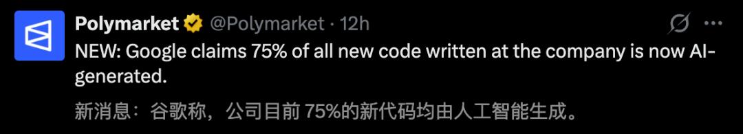 去年秋天这个数字还是50%,半年时间,暴涨了25%。U1S1,比起Anthropic 100%代码AI写,谷歌还是差了些。