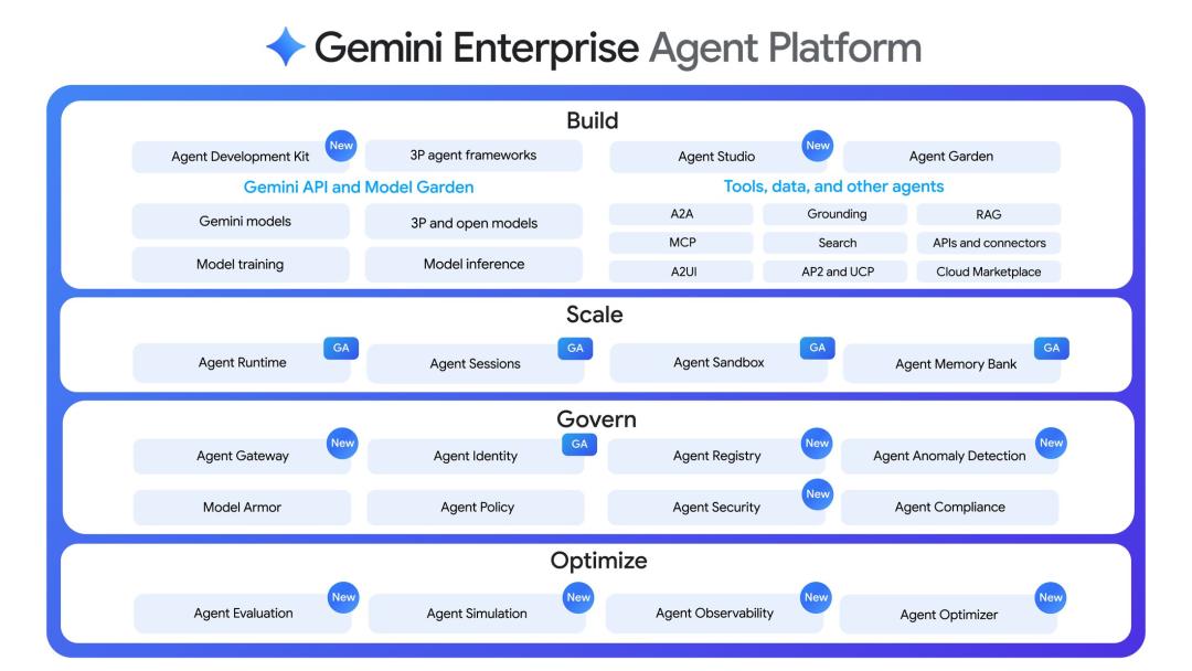 Workspace Intelligence、「Gemini企业级Agent平台」、AI应用保护平台AI-APP,以及升级Workspace与Gemini深度集成。