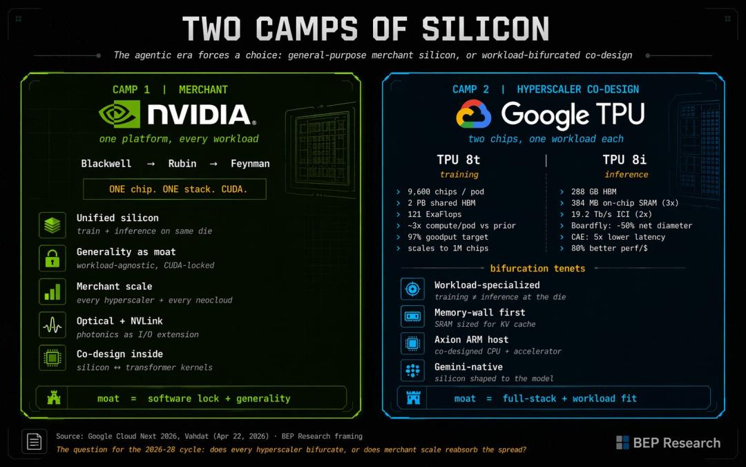 TPU 8t专攻训练,TPU 8i专攻推理。
