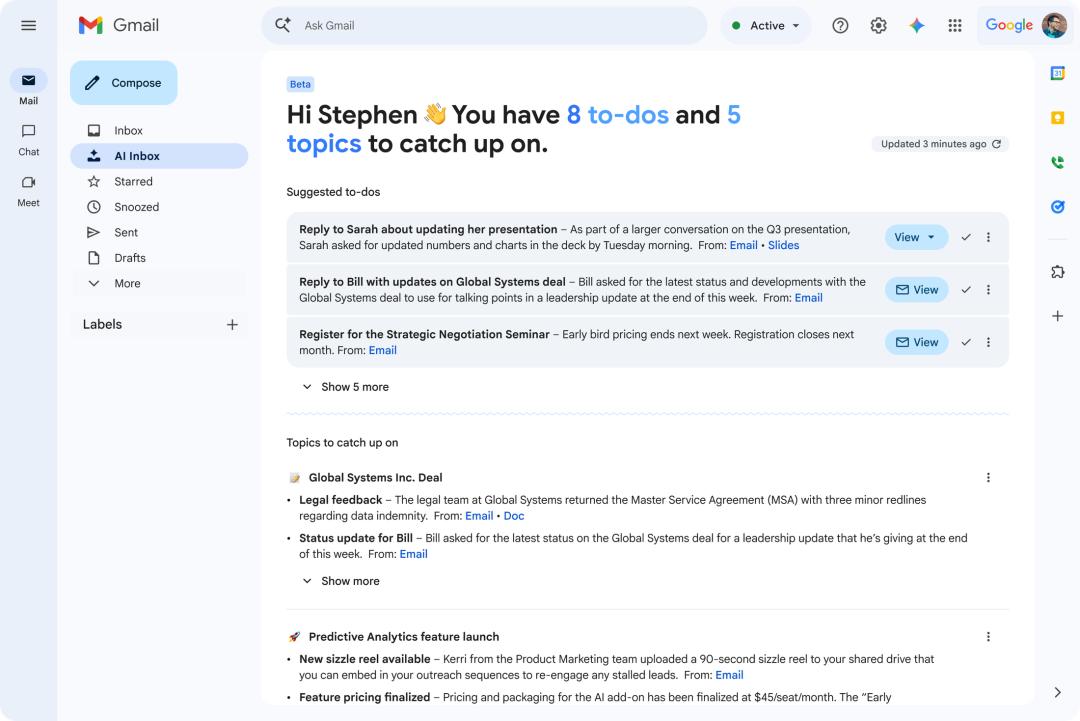 此外,Gmail还迎来了「AI收件箱」,自动提炼邮件重点;「Drive Projects」让知识库成为活水,终结了「找文件」的噩梦。