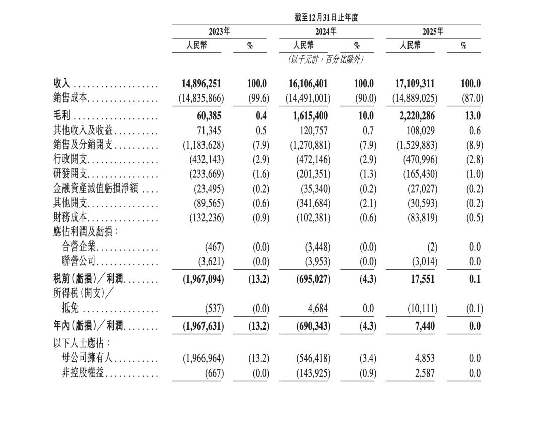 报告期内,T3出行的收入分别约148.96亿、161.06亿、171.09亿元;毛利分别约6038.5万、16.15亿、22.20亿元,毛利率分别为0.4%、10.0%、13.0%;净利润分别约-19.68亿、-6.90亿、744.0万元,经调整净利润分别约-19.53亿、6.75亿、5299.9万元。
