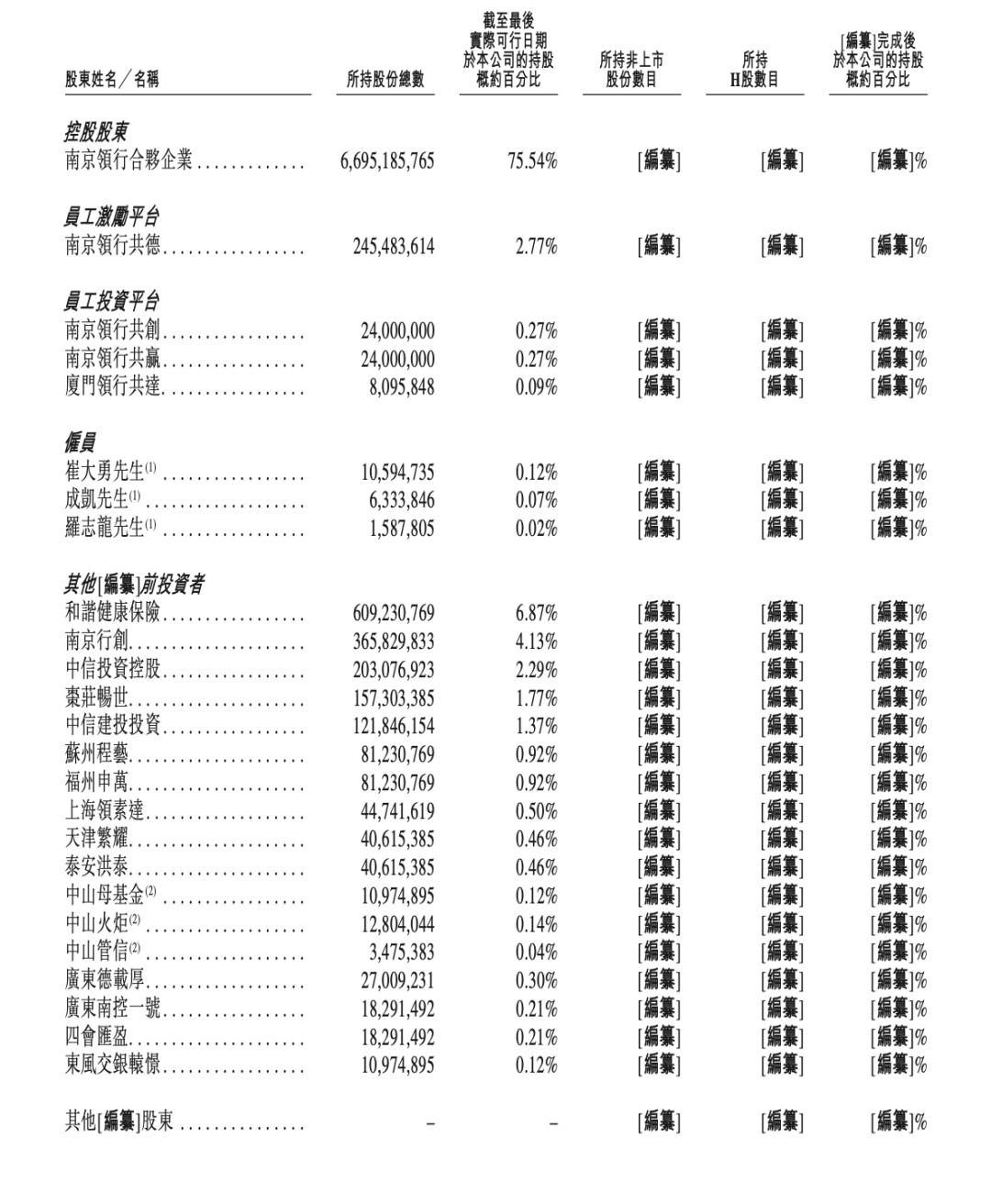 IPO前,南京领行合伙企业为T3出行的控股股东,持股75.54%。其LP中,中国一汽、东风汽车集团、长安汽车分别持股16.39%;湖北荣巽持股14.34%;腾讯从新持股6.15%;阿里巴巴创投、宁波联珺分别持股5.12%。