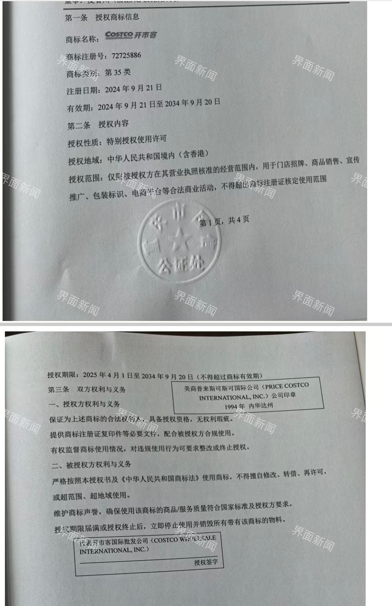 就此,开市客北京国际商业发展有限公司向界面新闻展示了商标授权书。