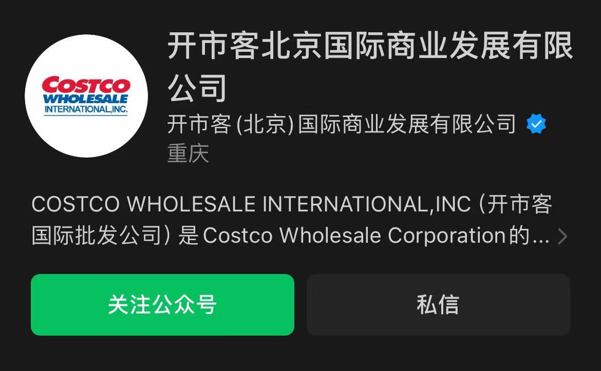 4月22日,开市客中国对界面新闻回应,上述公众号并非官方账号,官方公众号以“Costco开市客”为准,官方账号的认证主体为开市客(中国)投资有限公司。
