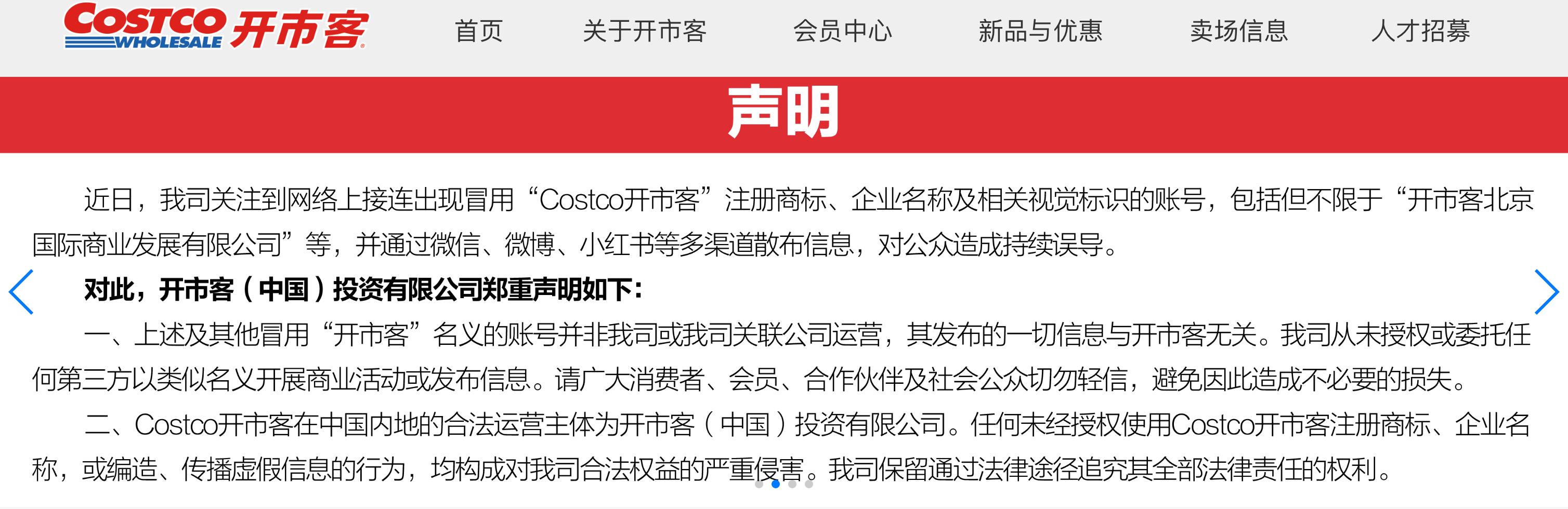 当日下午5点左右,开市客中国官网也发布了一篇声明,表示开市客中国与北京开市客无关,且自身为在中国市场的合法运营主体。