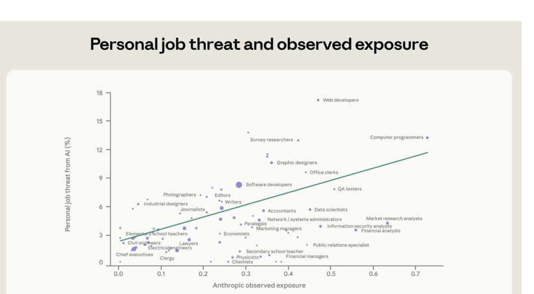 但 Anthropic 的数据说,这恰恰是 AI 暴露度最高的那条路。